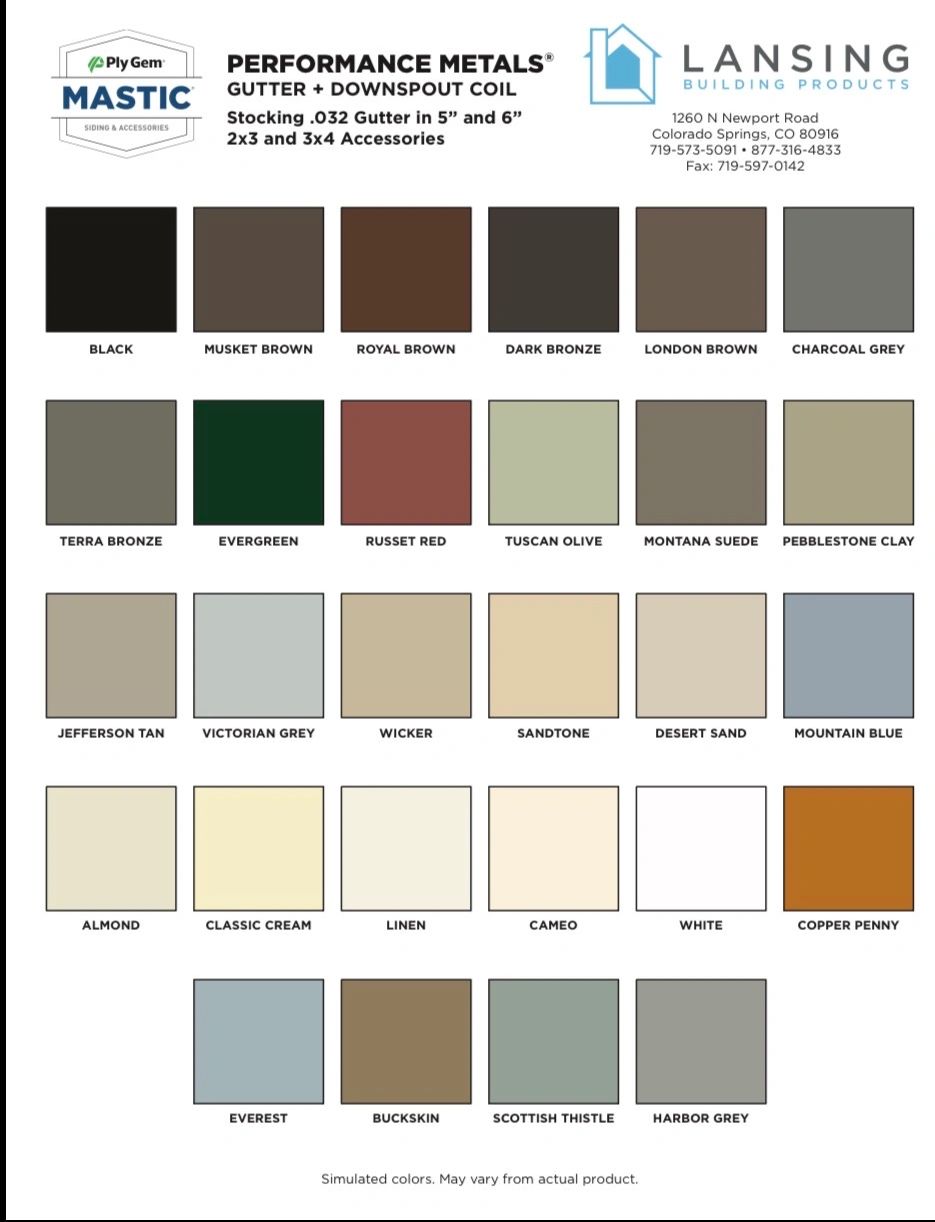 Available in a variety of colors, as well as, copper & galvalume